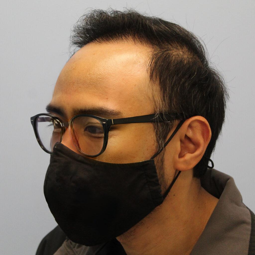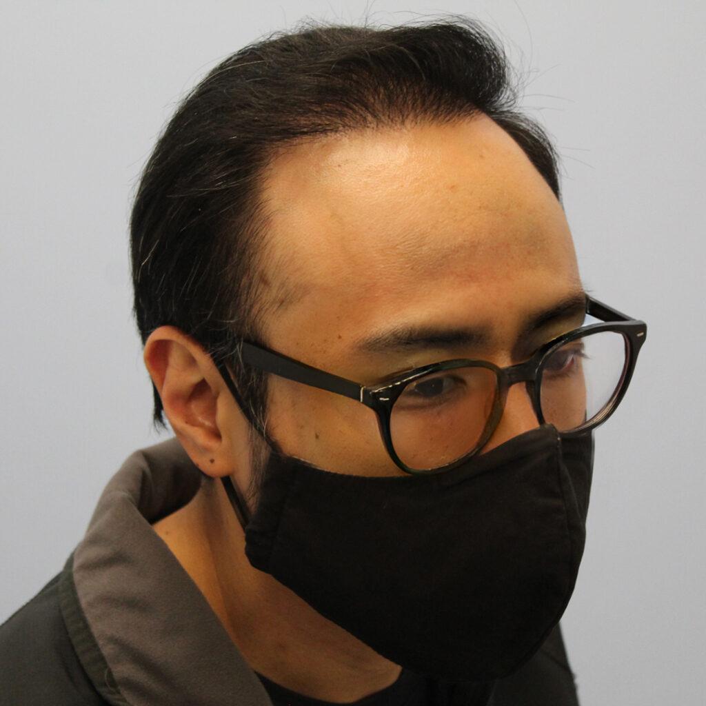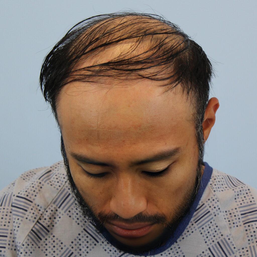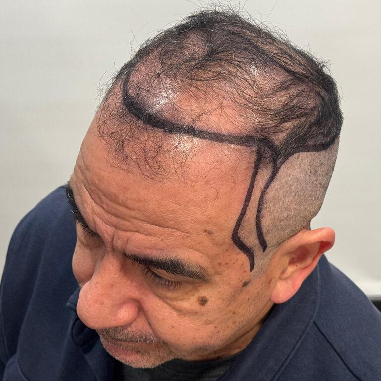That same contrast between dark hair and scalp means precision isn’t optional. A placement that’s slightly off angle, slightly wrong in depth, shows. The standard we hold every result to is the same: no one should look at your hairline and see a procedure. They should just see you.